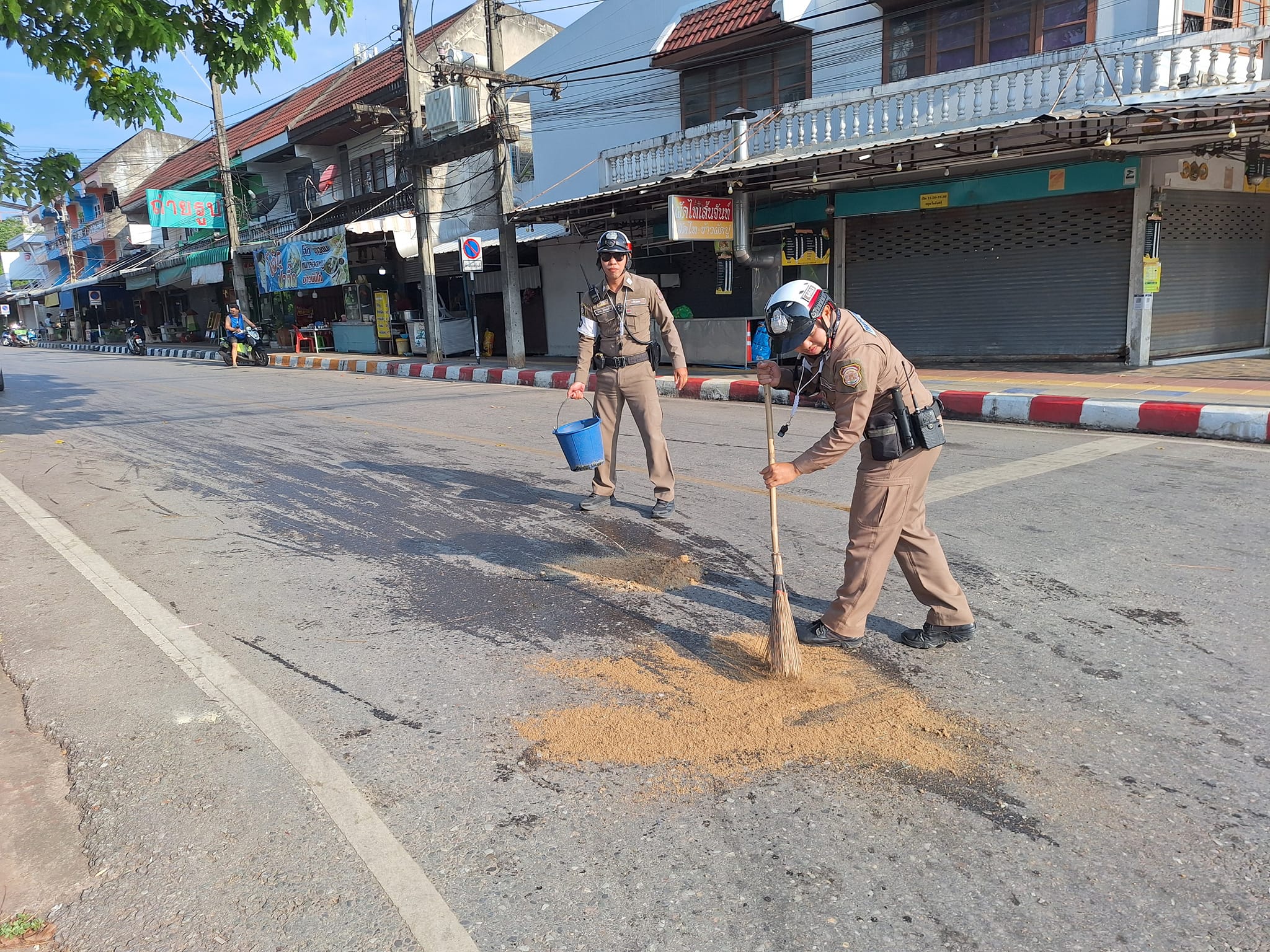 จำนวนคนดู: 66 ให้ใช้ความระมัดระวังในการใช้เส้นทาง เนื่องจากมีน้ำมันหกบนพื้นผิวถนน บริเวณท้ายซอย 3 (ถ