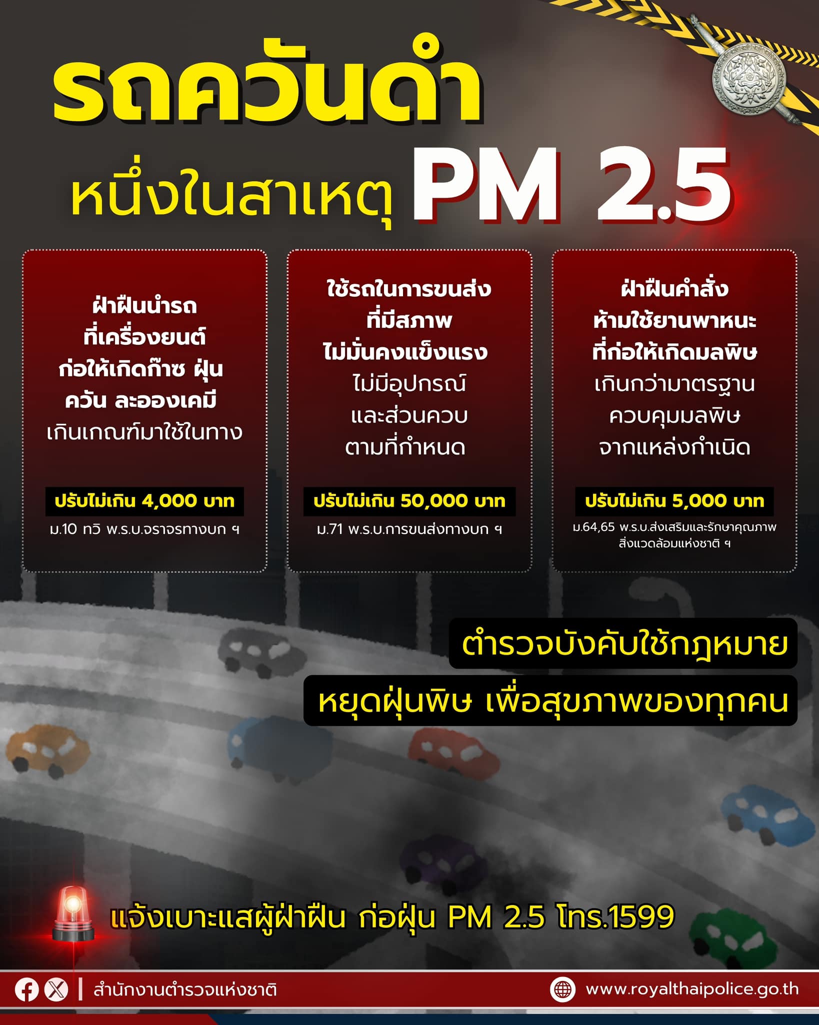 จำนวนคนดู: 192 หยุดรถควันดำ หยุด ฝุ่นPM2.5รถควันดำ หนึ่งในสาเหตุเพิ่มฝุ่นละอองขนาดเล็ก PM 2.5ตำรวจบั